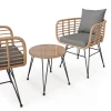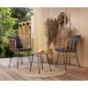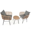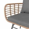 Комплект садових меблів зі штучного ротанга закохає в себе з першого погляду. Розкішні меблі на терасу захоплюють простотою форми, який складається з двох стільців і журнального столика. Каркас меблів виготовлений з алюмінію, який забезпечує надійний захист від передчасної корозії та гарантує тривалий термін служби. Зовнішня оббивка, зроблена з міцного ротанга, надзвичайно стійка до будь-яких погодних умов, здатна витримати ультрафіолет та на додачу дуже проста в догляді. Меблі садові з ротангу ідеально імітують натуральний ротанг, але значно перевершуючи його за показниками міцності та стійкості до мінливих погодних умов. Сучасний ротанг виглядає як натуральний матеріал, це не тільки яскраві емоції, але й відмінна якість за вельми доступною ціною.