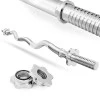 W-подібний гриф (120см) дозволяє анатомічно правильно розмістити кисті рук під час виконання вправ, знижуючи навантаження на зап'ястя. Це особливо важливо при роботі з великими вагами.