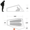 Конструкція Piuma 2 полегшена до гранично малої ваги, але при цьому не втрачає міцність та водостійкість. Повністю проклеєні шви, тришарова підлога і вентильований тамбур гарантують надійний захист від негоди. Інтегрований QR код із відеоінструкцією робить монтаж максимально інтуїтивним навіть у польових умовах.