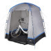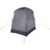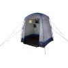 High Peak Torbole Light Grey/Black/Blue (14014) - практичний багатофункціональний намет зі знімною підлогою, яка надійно захищає від бруду та вологи, легко миється, а її передня частина складається для зручного входу. Тент водостійкістю 3000 мм вод. ст. виготовлений з високоякісного поліестеру з поліуретановим покриттям та має водонепроникні шви. Достатня висота стелі дозволяє вільно входити до намету. Два верхні регульовані вентиляційні отвори зменшують утворення небажаного конденсату. Вікно зі шторою забезпечує доступ денного світла в намет. Гачок для фіксації підвісного душу (максимальне навантаження 10 кг), органайзер і шнур для білизни доповнюють функціональність. High Peak Torbole Light Grey/Black/Blue (14014) ідеально підходить як гараж для велосипедів, намет для зберігання речей, душ або туалет.