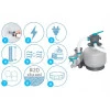 Пісочний насос ефективніший ніж насос з фільтром — піщану вставку замінюють раз на сезон. Піщаний фільтр потребує незначного обслуговування для належної роботи. Бак фільтра міцний і стійкий до корозії. Практичний клапан дозволяє керувати шістьма функціями: фільтрування, промивання, промивання, рециркуляція, спорожнення, зупинка.