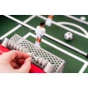 Ігрове поле зеленого кольору - таке нейтральне покриття не відволікає гравців. Поле виготовлено з високоякісної вологостійкої плити МДФ, яка покрита шаром ламінату, щоб зробити його стійким до стирання. Крім того, кути ігрового поля трохи підняті, що забезпечує повний контроль над траєкторією руху м'яча. Фігурки для настільного футболу виготовлені з якісного пластику і встановлені на міцних сталевих напрямних, оснащених спеціальними бамперами. У набір входять три м'ячі.
