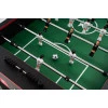 Ігрове поле зеленого кольору - таке нейтральне покриття не відволікає гравців. Поле виготовлено з високоякісної вологостійкої плити МДФ, яка покрита шаром ламінату, щоб зробити його стійким до стирання. Крім того, кути ігрового поля трохи підняті, що забезпечує повний контроль над траєкторією руху м'яча. Фігурки для настільного футболу виготовлені з якісного пластику і встановлені на міцних сталевих напрямних, оснащених спеціальними бамперами. У набір входять три м'ячі.