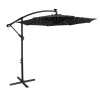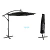 Головний шар парасолі виконано з поліестеру, який зустрічається у звичайних побутових парасольках, проте має підвищену щільність. Краплини води стікатимуть без промокань, Пекуче сонячне проміння залишиться на зовнішній стороні, а шар мокрого снігу на поверхні не зможе завдати суттєвої шкоди. Найчастіше споживачі приймають рішення замовити парасоль садову за її помірно яскраву теплого кольору підсвітку. 32 неперевершених лампи, що живляться від сонячної панелі одразу створюють бажану атмосферу. Якщо потреба у парасолі наразі зникла, належне тимчасове зберігання допоможе підтримати спеціальний чохол, що поставляється в комплекті.