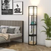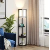Сучасний торшер Costway Terra 3-в-1 - це стильне та функціональне рішення для вашого дому. Витончений чорний корпус із МДФ поєднується з білим абажуром, створюючи м'яке тепле світло. Три відкриті полиці, шухляда для зберігання, два USB-порти для зарядки та компактний вертикальний дизайн роблять цю лампу для вітальні ідеальною для сучасного інтер'єру. Підходить для LED, ламп розжарювання та CFL (до 60 Вт).