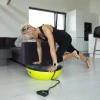 Вправи insPORTline Dome UNI ефективно знімають біль у спині та суглобах, а також зміцнюють все тіло. Два гнучких гумових еспандери дозволяють тренувати м'язи верхніх і нижніх кінцівок. Регулюючи тиск у накладці, ви можете легко налаштувати рівень складності вправ відповідно до своїх потреб. Ви можете контролювати складність вправ, кидаючи та надуваючи килимок, що робить його придатним як для початківців, так і для досвідчених користувачів. Це не оригінальний Bosu