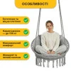 Основні характеристики Підвісне плетене крісло-гойдалка LEOBRO Boho Deluxe XL 80 см Grey (LB-1113)