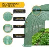 Накриття з поліетилену щільністю 140 г/м² на даху добре утримує тепло, пропускає сонячне світло та створює оптимальний мікроклімат для росту рослин. Теплиця оснащена двома рулонними дверима для зручного входу та ефективної вентиляції, а також 16 вентиляційними отворами, що дозволяють регулювати температуру й вологість усередині.