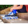Цікавим, дуже практичним рішенням є можливість регулювання розміру роликових ковзанів відповідно до довжини стопи (в діапазоні, заданому для конкретної моделі). Ви можете зробити це дуже простим способом - все, що вам потрібно зробити, це натиснути спеціальну кнопку в нижній частині черевика і одночасно зрушити передню частину черевика на таку довжину, поки ви не досягнете бажаного розміру. Завдяки цьому ваша дитина може використовувати обладнання протягом декількох сезонів.