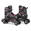 Цікавим, дуже практичним рішенням є можливість регулювання розміру роликових ковзанів відповідно до довжини стопи (в діапазоні, заданому для конкретної моделі). Ви можете легко змінити довжину взуття - все, що вам потрібно зробити, це натиснути спеціальну кнопку в нижній частині взуття і одночасно висунути передню частину взуття, поки ви не досягнете бажаного розміру. Завдяки цьому, у випадку з дітьми, обладнання можна використовувати протягом декількох сезонів.