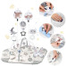 Саме тому ми додали до килимка багатофункціональні іграшки, які можна повісити на стійки - нехай щось брязкає, дзвенить і шарудить! Серед іграшок є навіть іграшка-пищалка - пташка та зірочка!