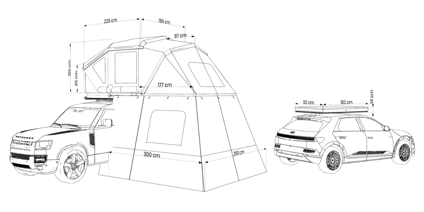 ЛЕГКИЙ И КОМПАКТНЫЙ ДИЗАЙН: ROOF MAXI отлично смотрится на вашем автомобиле. Высота палатки в сложенном виде всего 14 см. Благодаря этому, независимо от того, планируете ли вы разместить его на легковом автомобиле, пикапе, внедорожнике или фургоне, его форма не помешает вам управлять автомобилем. Вес палатки всего 38 кг.