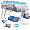 Бассейн 503 x 274 x 122 см Фильтрующий насос Фильтр для насоса Лестница двусторонняя Накрытие для бассейна Коврик для бассейна Сетчатые фильтры для насоса Хомуты для фильтр-насоса Шланги для фильтр-насоса Ремонтная заплата Инструкция на польском языке Руководство в файле PDF