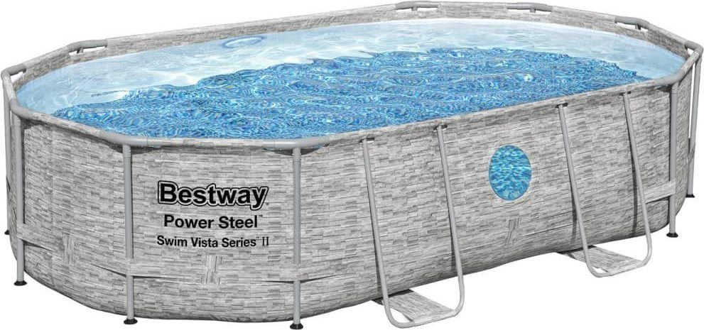 Описание Бассейн каркасный овальный Bestway Power Steel 488x305x107 см серый