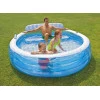 Надувной бассейн 229х218х79 см Intex. Этот бассейн создан для всей семьи. Есть место как для взрослых, так и для детей. Родители могут удобно расположиться на встроенной скамейке и наслаждаться охлаждением в жаркие дни, а их дети плещутся в воде рядом с ними. Кроме того, в бассейне есть два подстаканника, которые пригодятся в жаркие дни. Бассейн имеет размеры 229 х 218 х 79 см и изготовлен из крепкого винила. Голубовато-белые цвета способствуют водным развлечениям. Бассейн чрезвычайно функционален: две воздушные камеры гарантируют быстрое надувание и сдувание. Дополнительно в бассейне есть специальный клапан, облегчающий слив воды. В набор также входит ремонтная заплата.