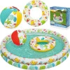 В комплект также входят надувные аксессуары для водных развлечений, такие как красочный круг для плавания и пляжный мяч. Это идеальное решение для детей, любящих проводить время на свежем воздухе и играть в воде.