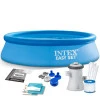 При заливке воды в бассейн, за счет движения вверх специального надувного кольца, расправляются стенки бассейна, и в считанные минуты можно получить настоящий источник лечебной влаги для себя и своей семьи в любом месте. Разместить бассейн можно как на песке, так и на траве, так как конструкция не требует специальной подготовки поверхности, на которой он будет установлен. А трехслойные ПВХ стенки обеспечивают надежность в использовании и защиту от проколов. Глубина воды в бассейне около 45-50 см, позволяющая использовать его как взрослым, так и детям, Easy Set станет ценным приобретением для каждой дружной семьи. За поддержание чистоты воды в бассейне отвечает идущий в комплекте компактный картриджный фильтр-насос.