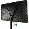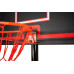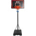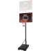 Высоту кольца можно изменять в пределах от 1,35 до 3,05 м, что позволяет настраивать ее под возраст и уровень игроков. Кольцо диаметром 45 см изготовлено из стальной трубки толщиной 16 мм. Щит размером 110х70 см выполнен из прочного пластика PE, а нижнее усиление обеспечивает дополнительную защиту от ударов мяча. Основная стойка изготовлена из стальных труб диаметром 66 мм, что гарантирует общую стойкость конструкции.