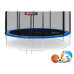 В набор входят специальные страховочные крючки для дополнительного крепления к земле, лестница для поднятия и восхождения, большой наружный чехол для хранения батута и 4 первоклассных мяча (пляжный, волейбольный, баскетбольный, футбольный) для веселых игр в кругу родных и друзей.