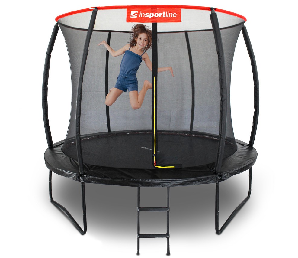 Остальные элементы батута также обеспечивают безопасность. Пружины, поддерживающие батут, спрятаны под защитным чехлом, а сетчатые столбы обиты пенопластовой гильзой. Лестница против скольжения позволяет безопасно заходить на батут, а вход закрепляется не только на молнии, но и на пряжках. Диаметр 244 см. Этот батут поместится в сад. Если вы хотите развлечь беспокойных членов семьи (включая взрослых), батут inSPORTline Flea 244 см – лучший выбор!