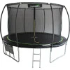 Высота батута от земли составляет 76 см – и чтобы облегчить доступ к конструкции, в комплект входит удобная стремянка. Внутреннее расположение сетки создает дополнительный уровень безопасности, ограничивая возможность контакта с каркасом во время прыжков. Благодаря высокому уровню стабильности батут подходит не только для детей, но и для взрослых весом до 150 кг.