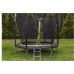 Конструкция батута изготовлена из материалов высочайшего качества, что делает его устойчивым к коррозии или неблагоприятным погодным условиям – вам не нужно складывать его и прятать в гараж каждый раз, когда на небе появляются темные облака. Тщательно подобраное количество пружин отвечает за динамичность прыжков и высокую силу отскока, а общая высота сетки, достигающая около 180 см, позволяет оторваться от земли, не боясь упасть. Приблизительное расстояние батута от земли составляет 90 см – в комплект входит двухступенчатая стремянка, чтобы облегчить подъем и спуск с конструкции.