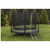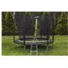 Конструкция батута выполнена из материалов высочайшего качества, что делает его устойчивым к коррозии или неблагоприятным погодным условиям – вам не нужно складывать его и прятать в гараж каждый раз, когда на небе появляются темные облака. Тщательно подобраное количество пружин отвечает за динамичность прыжков и высокую силу отскока, а общая высота сетки, достигающая около 150 см, позволяет оторваться от земли, не боясь упасть. Приблизительное расстояние батута от земли составляет 55 см – в комплект входит двухступенчатая стремянка, чтобы облегчить подъем и спуск с конструкции.