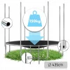 Удлиненные и сильно натянутые пружины с повышенной эластичностью обеспечивают плавный и динамичный отскок без рывков. Они гарантируют лучшую амортизацию и безопасность использования. Металлическая стремянка с правильным углом наклона обеспечивает безопасный подъем и спуск. Четыре двойных ножек в форме U равномерно распределяют вес и минимизируют риск сдвига даже на мягкой почве.