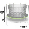 Впечатляющий диаметр 465 см обеспечивает много места для прыжков, что делает батут идеальным как для детей, так и для взрослых. Грузоподъемность до 150 кг позволяет пользоваться им одновременно нескольким людям, а 90 оцинкованных пружин обеспечивают плавный и динамичный отскок без рывков. Высококачественный коврик для прыжков гибкий, упругий, воздухопроницаемый и устойчивый к внешним условиям, что гарантирует комфорт в любую погоду.