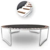 Батут также водонепроницаем, что обеспечивает высокую прочность и длительный срок службы батута. Все пружины оцинкованы, что обеспечивает стойкость к коррозии. Двойная структура ножек обеспечивает стойкость батута. В батут входит металлическая лестница, которая облегчает подъем наименьшим пользователям.