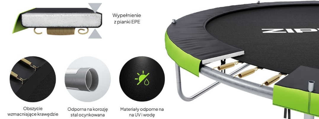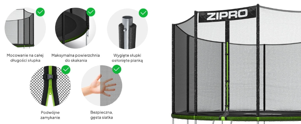 Безопасность и качество изготовления являются самыми высокими приоритетами, которые руководствовались при проектировании батутов ZIPRO. Именно благодаря им возможно беззаботное веселье на долгие годы. Конструкция включает в себя многочисленные решения, которые гарантируют, что даже после длительного и интенсивного использования батут сохраняет высокий уровень безопасности.