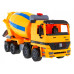 Желто-синяя бетономешалка оснащена бункером для заполнения барабана и вращающимся желобом для слива его содержимого. Все детали смотрятся как в настоящем автомобиле. Груша вращается и ею можно управлять с помощью красной рукоятки. Кабина грузовика также подвижна и может быть наклонена вперед.