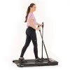 Беговая дорожка inSPORTline Tyrion уникальна во многих аспектах. В дополнение к удобной для хранения раме, он также имеет боковые ручки, которые помогают имитировать ходьбу с трекинговыми палками, позволяя вам тренировать верхнюю часть тела более эффективно. Боковые ручки регулируются по высоте (три положения – 91, 103 и 111 см). На правой ручке расположена панель управления с четырьмя кнопками – старт, стоп и настройка скорости.