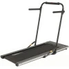 Беговая дорожка Toorx Treadmill Street Compact (STREET-COMPACT) из линейки Ultra Compact Line итальянского производителя Garlando SpA предназначена для спортивной ходьбы и бега в домашних условиях. Модель оснащена предварительно собранной рамой и транспортировочными роликами, благодаря чему легко перемещаться по квартире. Беговая дорожка проста в управлении, имеет современный элегантный дизайн и хорошие технические характеристики. Тренажер рассчитан на максимальную нагрузку до 100 кг и позволяет развивать скорость от 0,8 до 10 км/ч. Беговое полотно размером 120 х 46 см достаточно для тренировки пользователям ростом до 190 см. Понятный дисплей отображает информацию о скорости, дистанции, времени и расходе калорий. Беговая дорожка Toorx Treadmill Street Compact (STREET-COMPACT) имеет съемные перила для дополнительной безопасности, а также систему фиксации для удобного вертикального хранения.