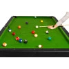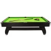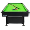 Игровое поле стола изготовлено из высококачественной плиты МДФ толщиной 15 мм, покрытой зеленым полиэстером весом 300 граммов. Края стола изготовлены из прочного ПВХ, что предотвращает стирание и гарантирует высокое качество.