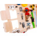 Изучение элементов настоящей мастерской: дети любят подражать взрослым, а учебная сенсорная доска позволяет им почувствовать себя настоящими энтузиастами DIY. Благодаря таким реалистичным элементам как инструменты и механические части, малыши смогут изучить названия и функции основных инструментов. Это не только развивает их знания, но стимулирует воображение и творческие способности.
