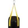 Чехол боксерской груши Avento® изготовлен из высококачественного полиэстера с центральной панелью искусственной кожи PU, устойчивой к силе повторных ударов. Прочная система подвески с усиленными ремнями, соединенными кольцами в одной точке с крепким карабином, обеспечивает максимальную безопасность и легкость использования.