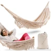 Хотите понежиться на солнышке или отдохнуть в тени, размеренно качаясь в такт малейшего дыхания воздуха? Тогда бразильский гамак Di Volio Bari – именно то, что вам нужно. Комфортный, стильный и надежный гамак станет не только идеальным украшением вашего сада или дворика, но и отличным местом для отдыха и внутренней релаксации. Его оригинальный дизайн добавит экзотических ноток во внутреннюю отделку локации для релакса, веранды или сада. Кружевное плетение, изысканные кисти, свободно спадающие с обеих сторон, делают его прекрасным напоминанием о Бразилии. бразильский гамак Di Volio Bari – значит выбрать качество и надежность по весьма доступной цене. Прочная конструкция имеет достаточно большую грузоподъемность и обеспечивает пользователю полную безопасность. А основное полотно Bari , сделанное только из качественных материалов (хлопок и полиэстер), дарит комфорт и гарантирует длительный срок службы.