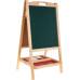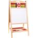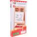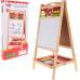 Большая деревянная доска – развивающая игрушка для детей от 3 лет. С одной стороны доска магнитная, с другой – меловая. Белая сторона предназначена для писания входящей в комплект ручкой. Ручка имеет магнит для крепления к доске и ластик. В верхней части доски размещены счет и часы с движущимися стрелками. Вы можете рисовать на стороне мела мелом, входящим в комплект, а затем стереть все губкой. Игра с доской положительно влияет на ручные навыки, концентрацию и воображение.