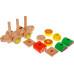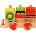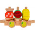 Паровозик с сортерами – это деревянная детская игрушка для детей от 3 лет. В поезде есть 3 вагона с вертикальными брусками, на которые дети могут класть кубики. В набор входит целых 27 деревянных кубиков разных форм и цветов. На колесах и многих блоках паровозика изображены разноцветные сочные фрукты, которые обязательно понравятся детям.