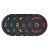 Диск изготовлен из материалов высокого качества. Прочная резина, которой они покрыты, отлично гасит звуки при отклонении груза и предотвращает порчу поверхности.