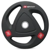 Олимпийские диски изготовлены из прецизионного чугуна, что делает их устойчивыми к коррозии и повреждениям. Для дополнительной защиты диски покрыты антискользящей резиной, которая поглощает вес при случайном падении, а также уменьшает создаваемый шум при их использовании.