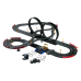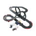 В комплекте есть 2 гоночные машинки с подсветкой, 2 пульта в виде руля и элементы трассы, позволяющие строить прямые участки, крутые повороты и 2 эффектных петли 360°. Транспортные средства ускоряются по команде, издавая реалистичные звуки двигателя и ускорения. Трассу можно питать с помощью входящего в комплект адаптера 12 V или 8 батареек AA (не входят в комплект), а пульты дистанционного управления работают как с проводным подключением, так и с батарейным питанием.