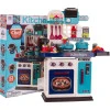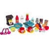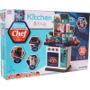 Хорошо оборудованный центр кухни с творческими возможностями для детей от 3 лет. Набор состоит из 53 элементов, изготовленных из пластика высочайшего качества в ярких цветах, поощряющих детей исследовать и играть. На кухне открывается духовой шкаф и холодильник и полки. Конфорки плиты имеют подсветку и звуки жарки и приготовления.