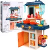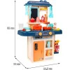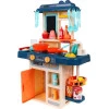 На кухонном столе установлена интерактивная плита с конфорками. Включив их ручкой, дети услышат звуки приготовления, сопровождающиеся красным светом. Конфорки выглядят очень реалистично и дополнительно одна имеет функцию сопряжения. Аттракцией для маленьких поваров станет и работающий кран, из которого течет вода.