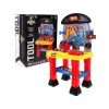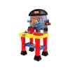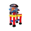 Набор для маленького самодельника имеет вид стойки с большой столешницей , дополнительной полкой и доской для инструментов . Дети будут играть со многими инструментами, такими как молоток , отвертка , гаечные ключи и пилка . Вы можете попрактиковаться в завинчивании шурупов благодаря 2 доскам с отверстиями .