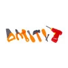 Наибольшие преимущества набора – интерактивные функции в 2 аксессуарах. Это большой автомобильный двигатель, питающийся от батареи, с фиктивными датчиками и рабочими огнями . Второй элемент - электрический шуруповерт/дрель , издающий характерные звуки при вращении дрели.