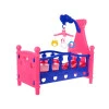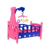 В набор входит подушка и одеяло для куклы. Над кроватью - карусель с разноцветными игрушками на нитях . Элементы могут вращаться, чтобы кукла спала, как в настоящей люльке.