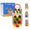 Деревянный цветной безопасный кубик для детей старше трех лет. Игра с этими кубиками провоцирует воображение и творческие возможности. Ребенок развивает ручные навыки и координацию глаз и рук, а также учится распознавать цвета и формы. Деревянный куб и его элементы изготовлены из высококачественной древесины, окрашены безопасной краской, они крепки и устойчивы к повреждениям, игрушка прослужит годами. Куб состоит из шести боковых граней. На пяти гранях куба расположены разные аттракционы.
