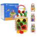 На стене есть отверстия разной формы, в которые ребенок должен поставить соответствующие блоки (блоки входят в комплект).